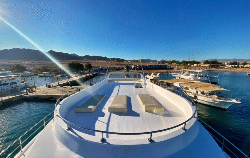 Once everyone is ready, the yacht departs the marina and sets sail toward the day’s destinations. Relax on deck, enjoy the sea breeze, and take in Dahab’s stunning coastal views as you begin your cruise.