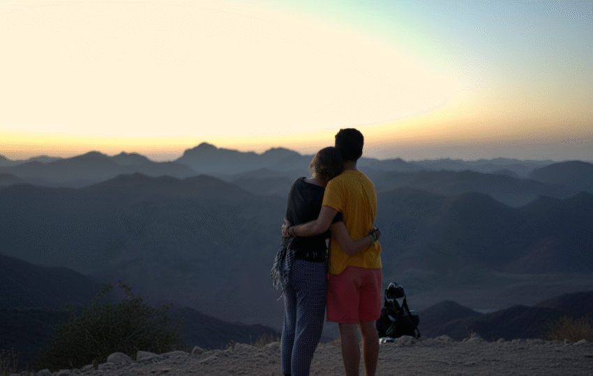 عند وصولك إلى القمة، استمتع بمشهد شروق الشمس المهيب وهو يضيء قمم جبال سيناء — واحدة من أجمل لحظات الشروق في مصر.